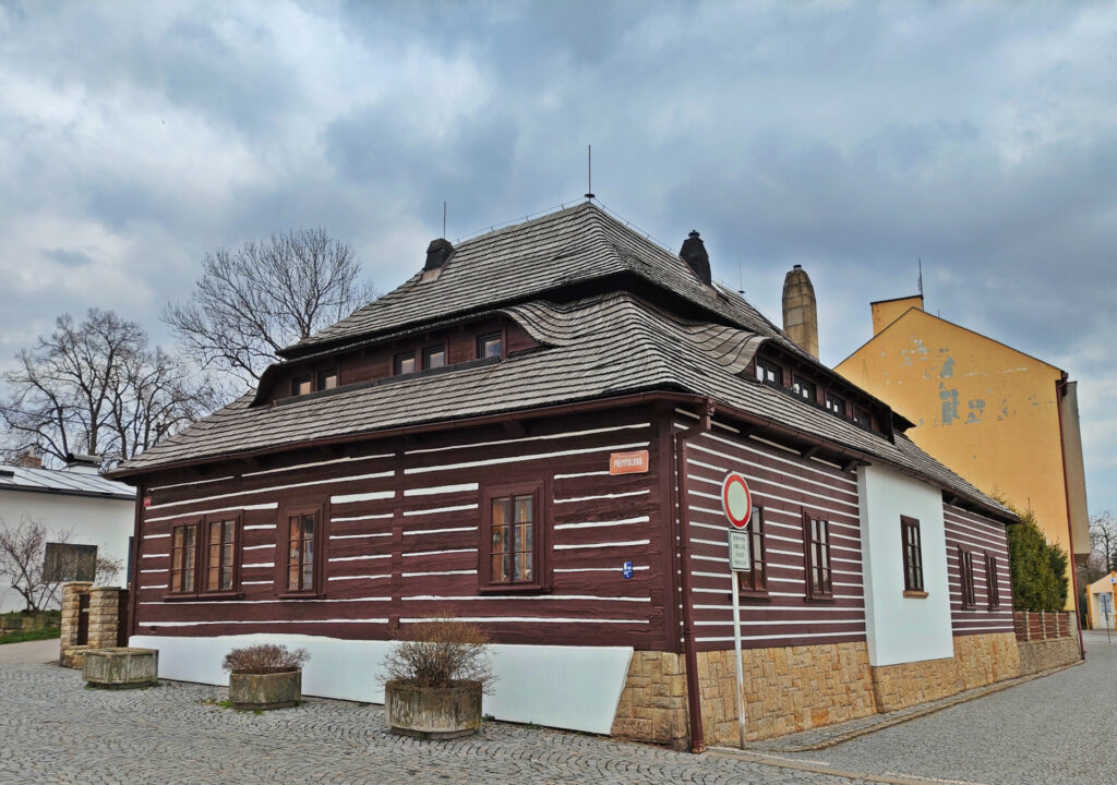Jen pár kroků od pomníku se ukrývá nejstarší dřevěná stavba ve městě – starobylá roubenka. Kdysi domov soustružníka Šmída, později velitelství kasáren i četnická stanice.