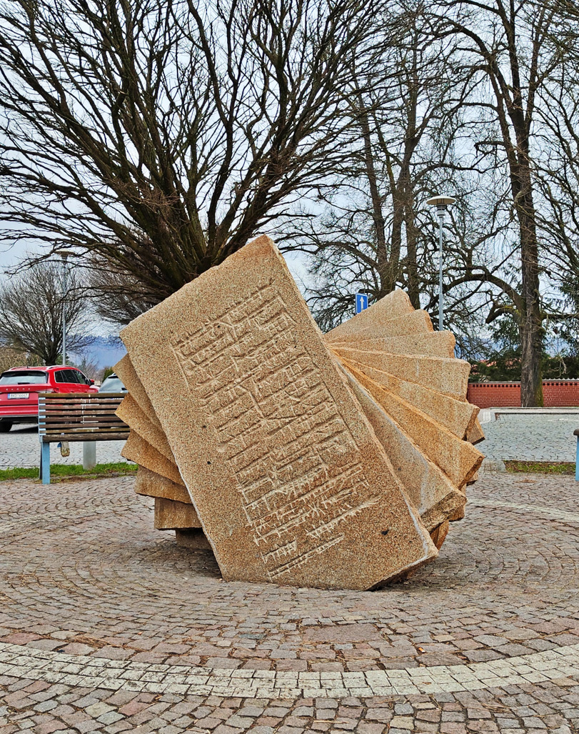 A nakonec – kašna se sochou Záboje, hrdiny z Rukopisu královédvorského. V staroslovanském kroji, s mečem a štítem v rukou, střeží tři životadárné prameny: čistotu, zdraví a stálost. Socha, která byla kdysi odstraněna, se dnes pyšně vrátila na své místo, a její vytesaná slova jsou moudrým poselstvím pro každého, kdo kolem projde: „Ty mluvi k nim slovy oteckými.“ Připomínají nám, že náš jazyk je poklad, o který je třeba pečovat – stejně jako o celé toto kouzelné náměstí.