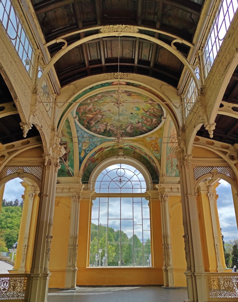 Novobarokní Hlavní lázeňská kolonáda z 19. století, známá také jako Kolonáda Maxima Gorkého, patří již neodmyslitelně k symbolům města. Každý krok pod jejími klenbami je jako procházka galerií: nad hlavami se vine fascinující cyklus fresek, vyprávějící příběh o spojení člověka a vesmíru, zatímco stěny zdobí honosné bronzové reliéfy, které dodávají interiéru noblesní atmosféru starých časů.