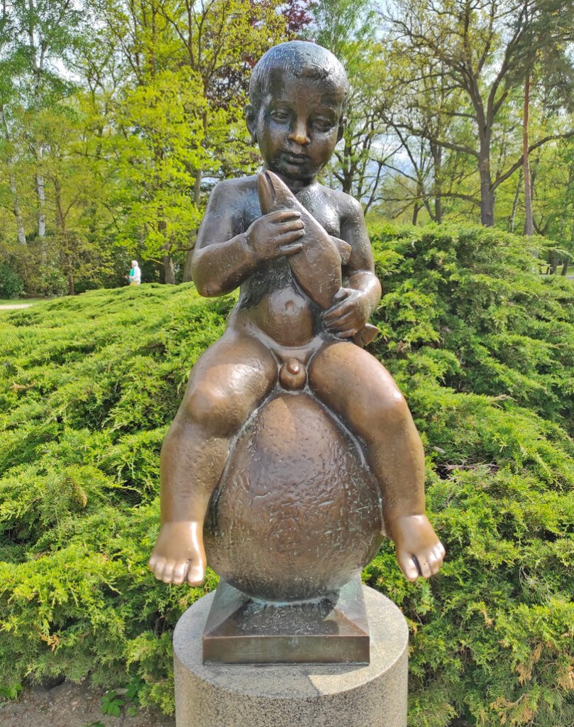 Napravo od pramene se pak nachází symbol Františkových Lázní, socha malého chlapce s rybou. Socha Františka se stala slavnou i díky tradici, která říká, že pokud chce žena otěhotnět, tak má sošku chytnout za levou nožičku. Tato zvyklost souvisí bezesporu i s faktem, že lázně jsou pověstné léčbou neplodnosti. Originál sochy si můžete prohlédnout v Městském muzeu Františkovy Lázně.