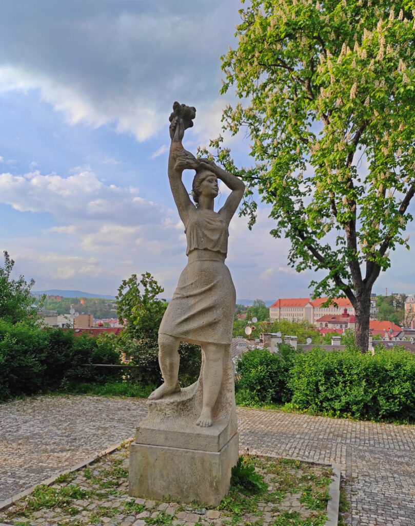 Až budete obdivovat tento vodní koncert, vzpomeňte si na Petra Hapku, autora první skladby nazvanou „Hudba pro fontánu“, jehož sochu najdete jen kousek odtud.