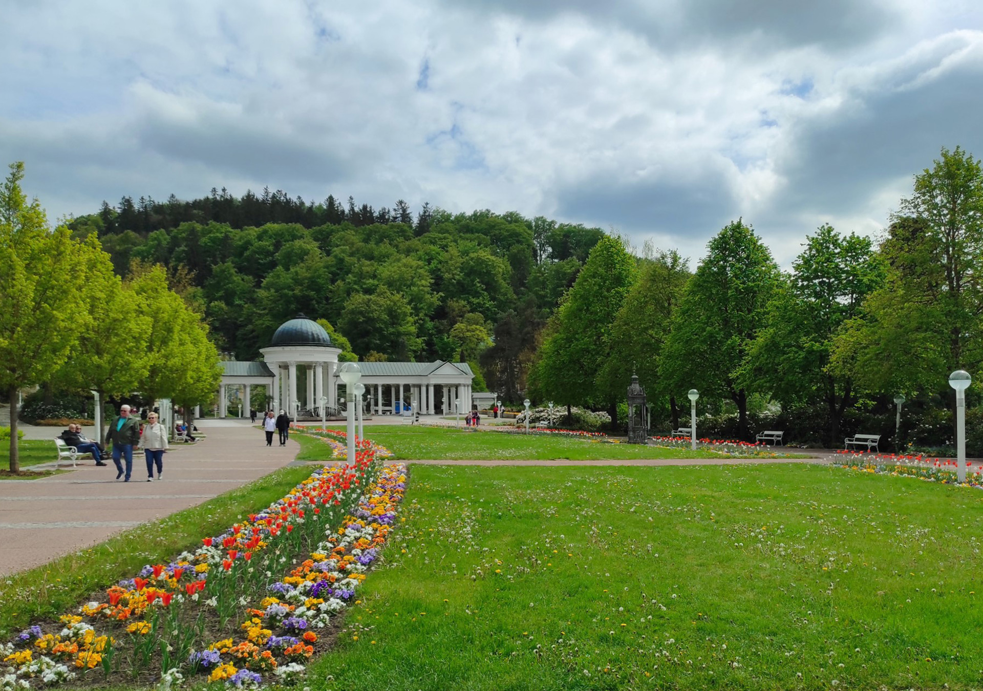 Procházku začněte v Městských sadech, kde se tyčí jezdecká socha císaře Františka I., zakladatele lázní. Právě tady, v nejstarší upravené části města, stojí hudební pavilon, kde dnes hrává Františkolázeňský symfonický orchestr.