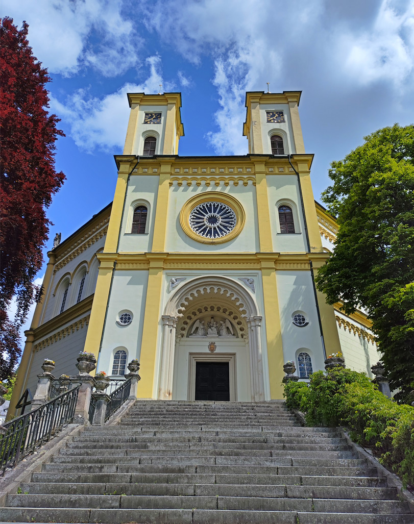 Kousek od parku se vypíná empírový klenot – kostel Povýšení svatého Kříže, jedna z mála čistě empírových sakrálních staveb v Česku. Čtyři monumentální sloupy lemují vstup, uvnitř vás ohromí fresky od Viléma Kandlera a křížová cesta od Rudolfa Bötgera. Z věže kostela zní tři zvony, z nichž ten nejstarší pochází už z roku 1506.