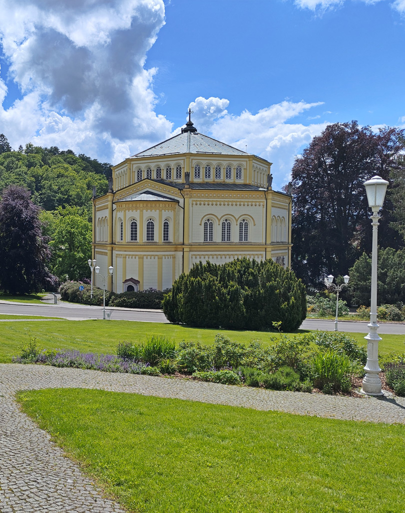 Pokračujte po Národní třídě, která vás zavede mezi majestátní budovy lázeňských domů až k elegantnímu pavilonu Františkova pramene – nejstaršímu a nejslavnějšímu prameni města. Právě kolem něj kdysi vyrostly první domy budoucích lázní, a tak tu doslova stojíte u zrodu Františkových Lázní. Ochutnejte vodu, kterou popíjel císař František I., spisovatelka Božena Němcová nebo básník Goethe, a vychutnejte si chvíli v srdci tohoto kouzelného lázeňského města.