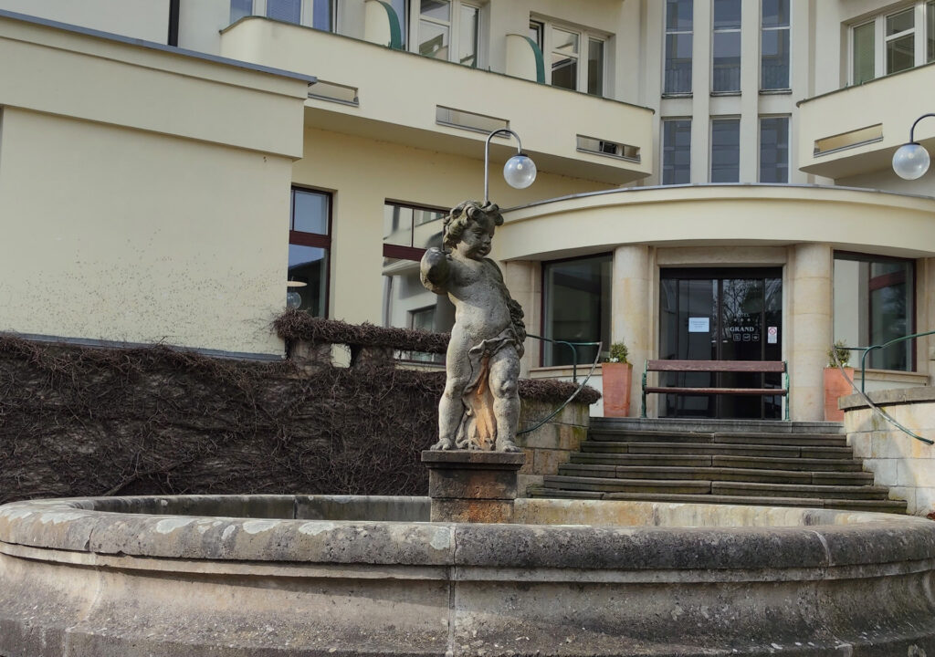 Na náměstí vás okamžitě upoutá majestátní novorenesanční budova Lázeňského hotelu, postavená v 19. století. Kdysi sloužila jako radnice a reprezentovala město i lázně.