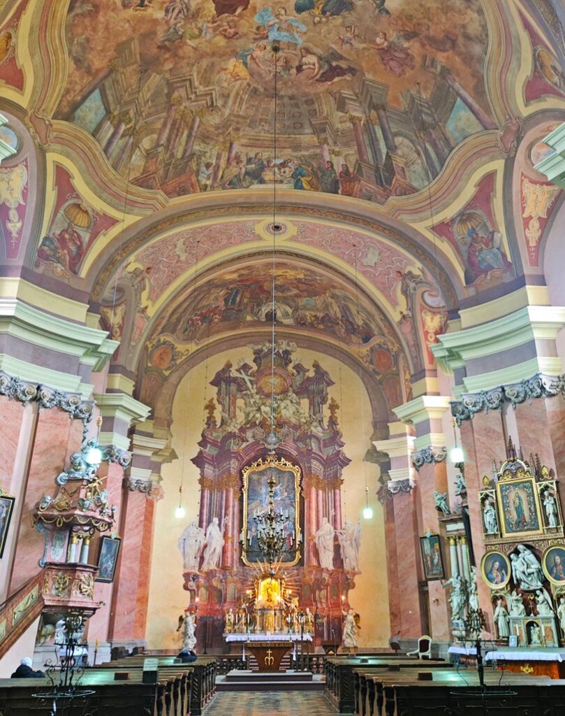 Kostel je architektonickým unikátem – jeho prostor působí téměř magicky díky propojení elipsovitých tvarů. Uvnitř vás ohromí fresky svatého Františka z Pauly, vzácné sochy a obrazy od mistrů, jako byl Petr Brandl. Zlatým hřebem je pozdně gotická socha Madony, která přečkala i zrušení kláštera za Josefa II.
