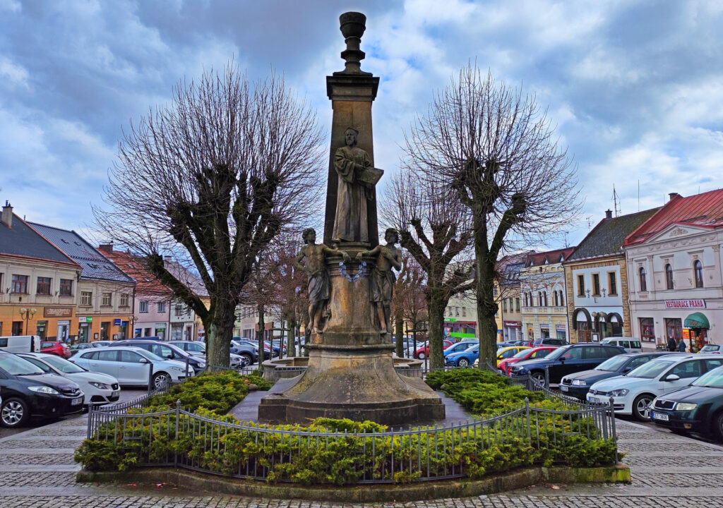 Trojúhelníkové Husovo náměstí je srdcem města a největším náměstím v regionu. Jeho současná podoba se rodila po požárech a přestavbách – dnes tu najdete secesní pomník Mistra Jana Husa, dvě kašny a barokní morový sloup. Dominantou je neogotická radnice s hodinovou věží, která už dvakrát lehla popelem.