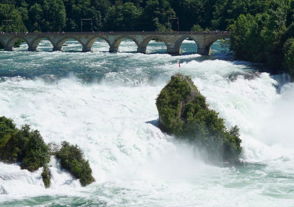 Naši cestu jsme započali u obrovské divoké řeky, která se s ohlušujícím rachotem řítí do hloubky. Přesně to jsme zažili při naší návštěvě Rýnských vodopádů (Rheinfall), největších v celé Evropě.