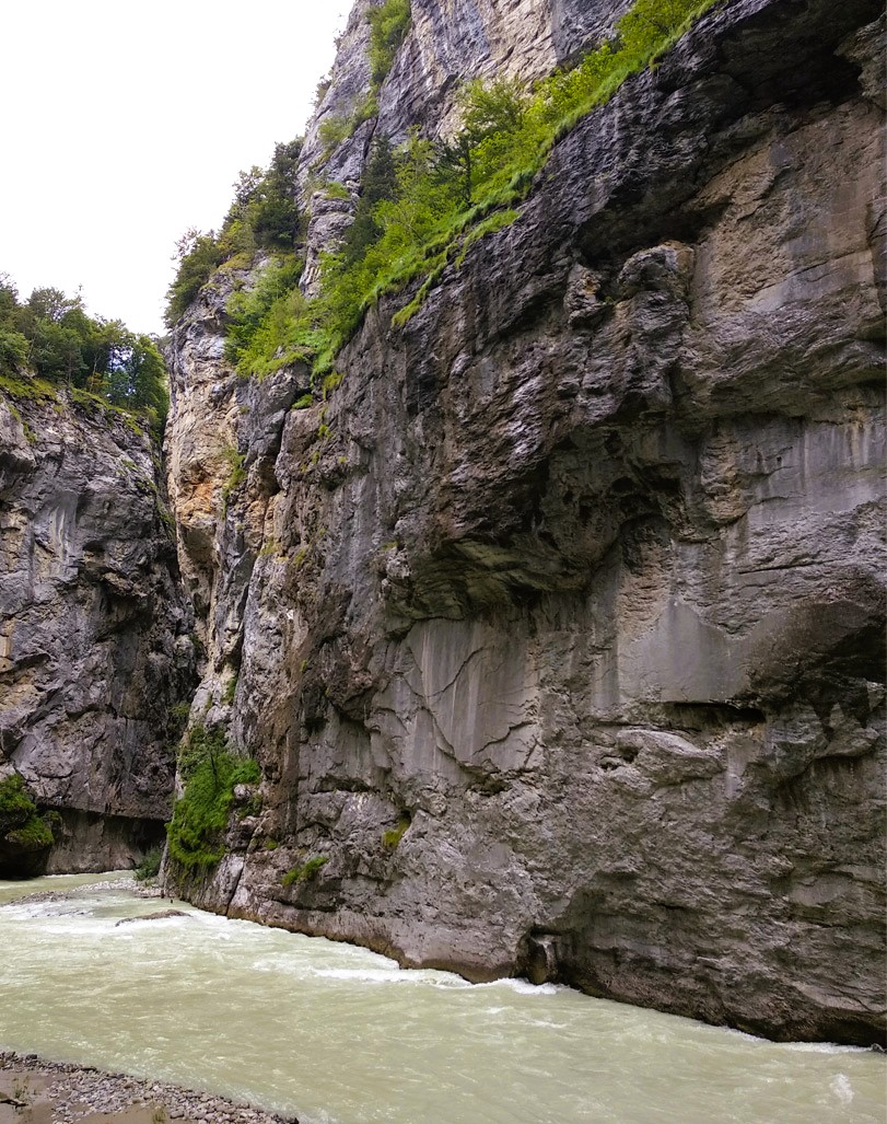 Na úpatí průsmyků Grimsel a Susten jsme se ocitli v úžasu nad soutěskou Aare (Aareschlucht). Představte si 1400 metrů dlouhý a 200 metrů hluboký kaňon, který se v nejužším místě zužuje na pouhý metr. Těžko uvěřit, že tuto impozantní rokli vytesala řeka Aare během nespočetných let.