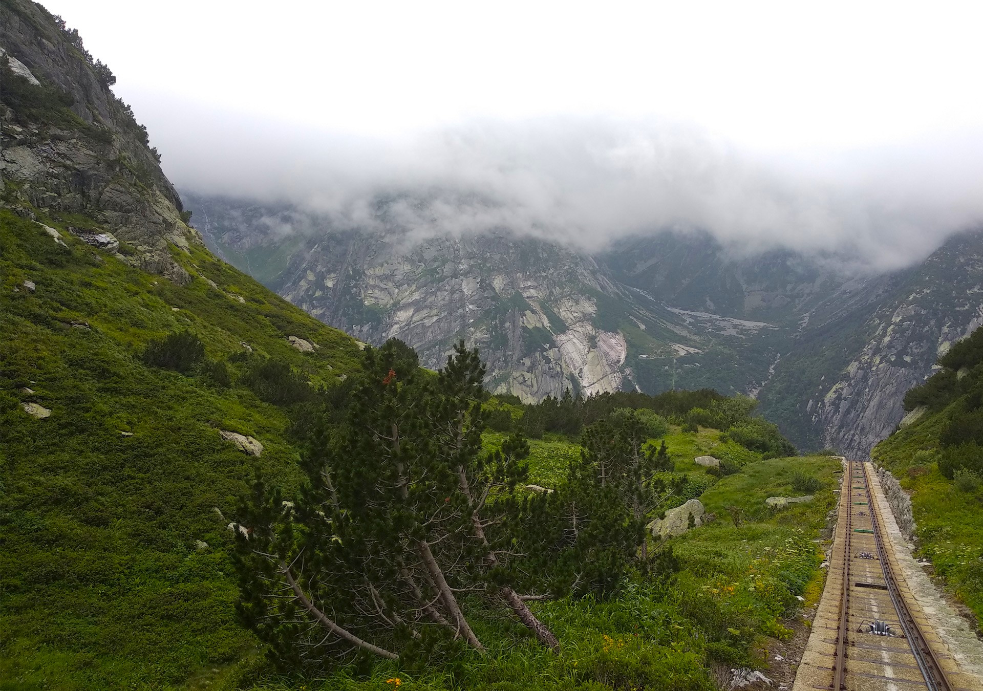 Adrenalinovou horskou dráhu bez kolejí jsme si užili na lanovce Gelmerbahn. Tato lanovka, se svým neuvěřitelným sklonem 106 %, je právem považována za nejstrmější otevřenou lanovku pro osobní přepravu v Evropě.