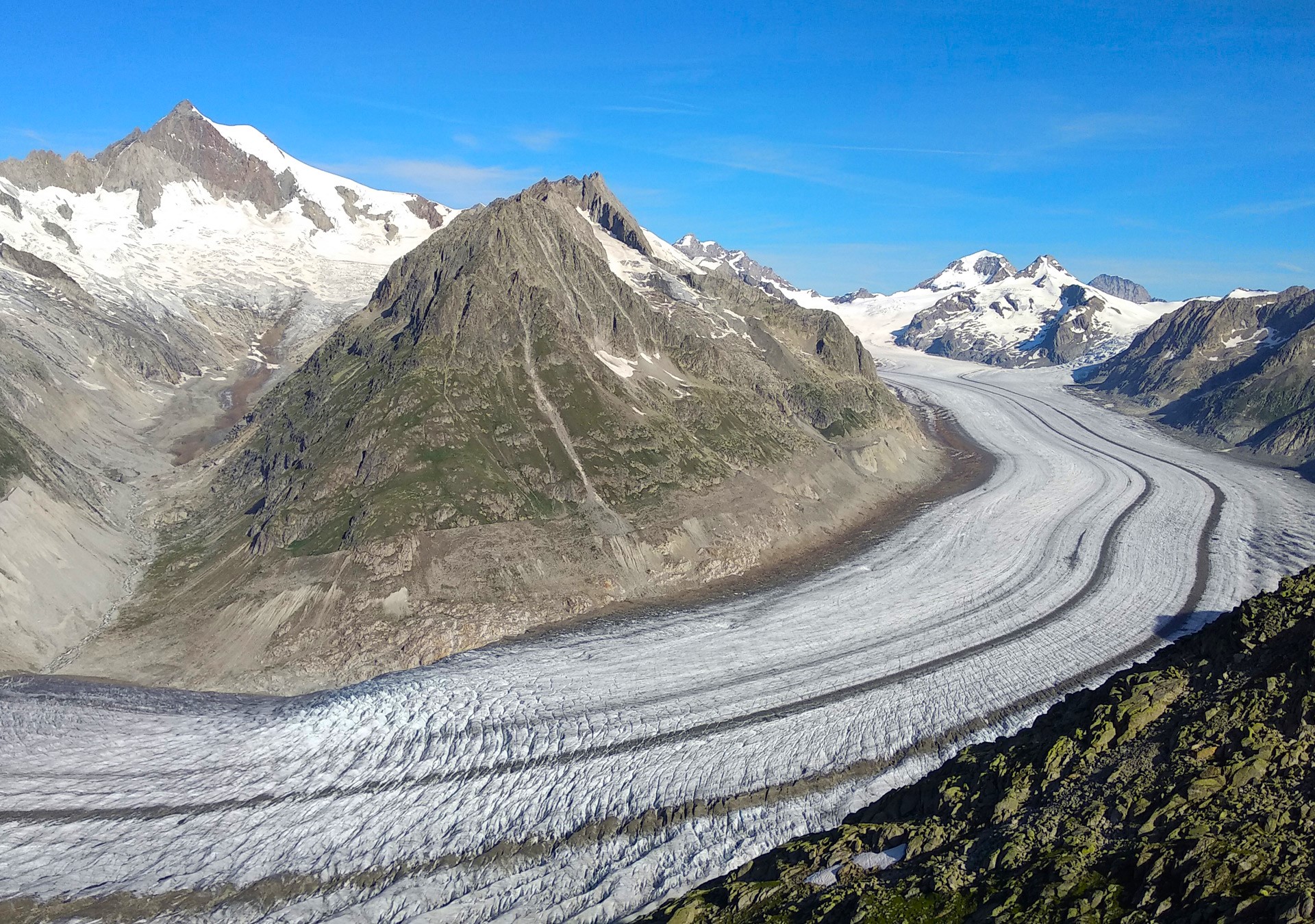 Z této výšky se nám naskytl dechberoucí pohled na největší alpský ledovec Aletschgletscher. Tenhle obr v sobě ukrývá neuvěřitelné 4 % pitné vody celé Evropy. Bylo to jako stát na střeše obří lednice. A to ještě nebylo všechno. Zároveň jsme viděli i majestátní Jungfraujoch, konečnou stanici nejvyšší železnice na starém kontinentu.