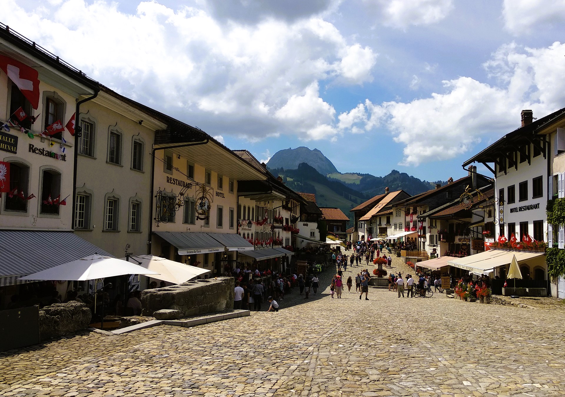 Pod hradem se rozprostírá náměstíčko, které nás přeneslo o několik století zpět. Dlážděné uličky lemují půvabné domky, jejichž fasády vyprávějí příběhy minulosti. Některé z nich stojí na tomto místě už více než 400 let. V přízemí domků na nás čekaly útulné obchůdky s místními produkty a restaurace se švýcarskými specialitami.