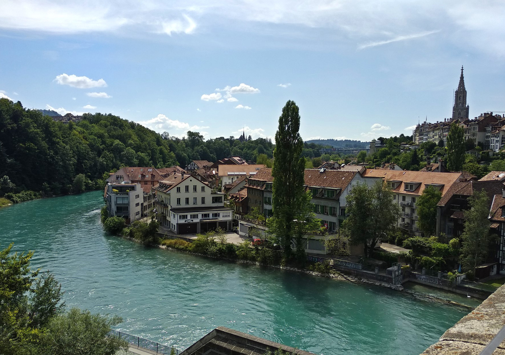 Pak jsme se vydali do gotické katedrály Berner Münster, kde se na nás z věže dívaly sochy znázorňující poslední soud. Bylo to jako vstoupit do středověkého obrazu. Z přilehlého zeleného parku se nám následně naskytl krásný výhled na tyrkysově zbarvenou řeku Aare omývající v ostré zákrutě břehy města.